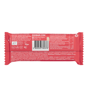 Zutaten: Reissirup*, Cashewkerne*, rosa Schokolade* (Kakaobutter*, unraffinierter Rohrzucker*, Kokosnusscreme*, Kokosmehl*, Erdbeerpulver* (4%), Emulgator: Sonnenblumenlecithin*), Kokosmehl*, Kakaobutter*, Erdbeerpulver*.