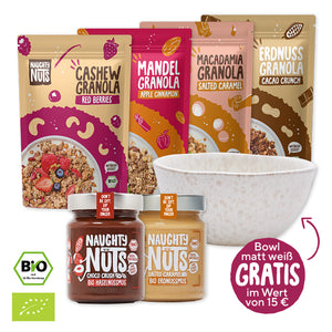 16 EuroAll in one: Alle Granola Sorten + Bestseller Nussmus + Bowl for free!