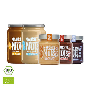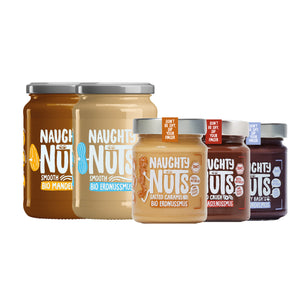 Keine Sorge, Naughty! Wir haben dir fünf unserer beliebtesten Nussmuse in eine Box gepackt.