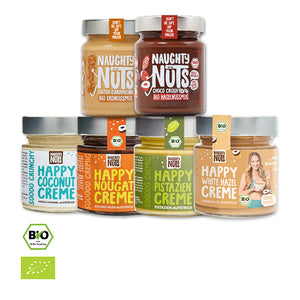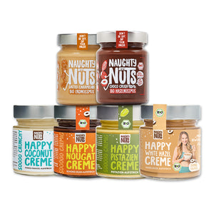 Dein Einstieg in die Welt von Naughty Nuts: Unsere beiden Nussmus Bestseller & alle Happy Cremes in einem Paket!
